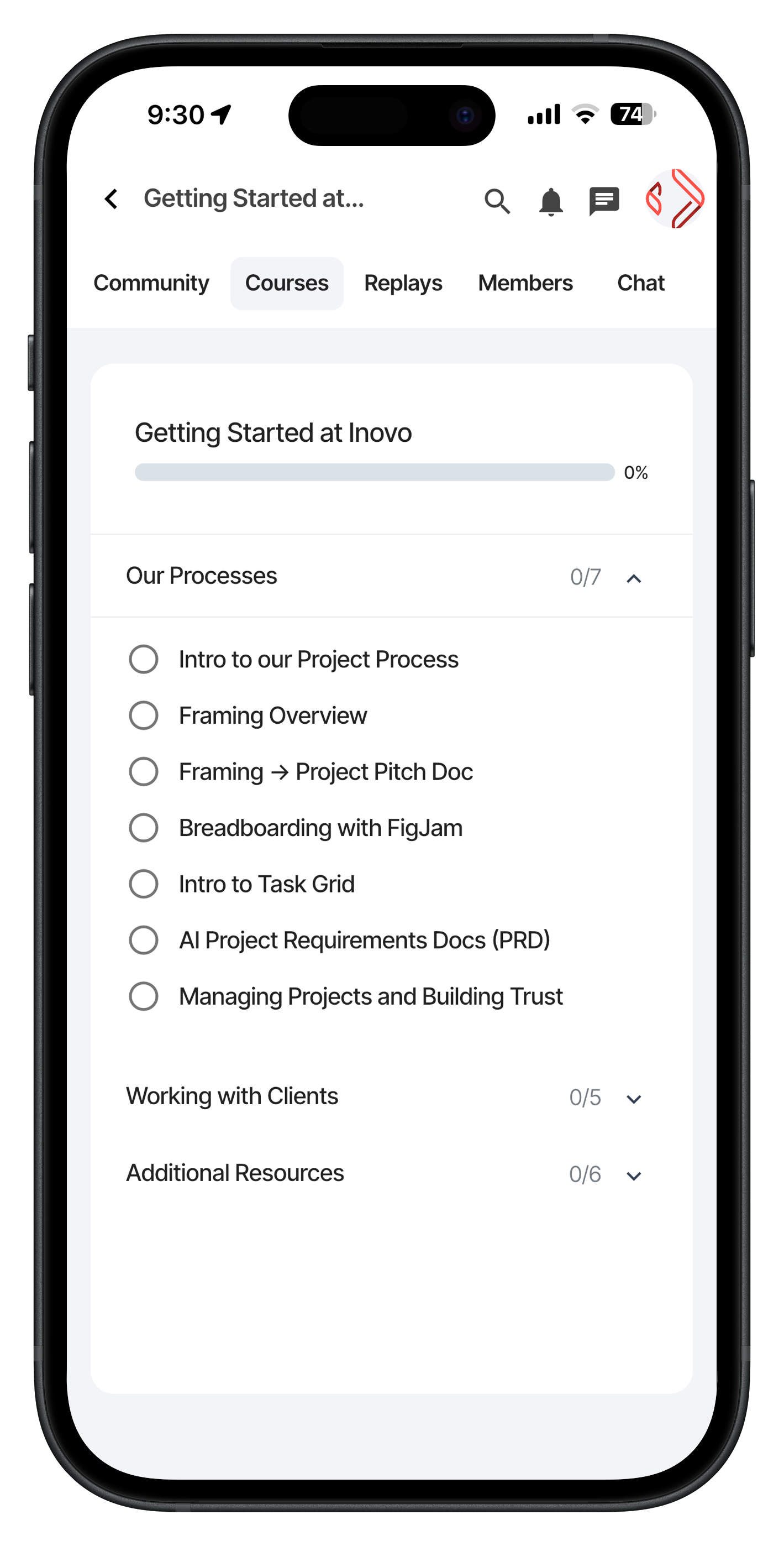 Sign up now and get full access to the Inovo course. Learn how we frame, shape, and ship with AI.