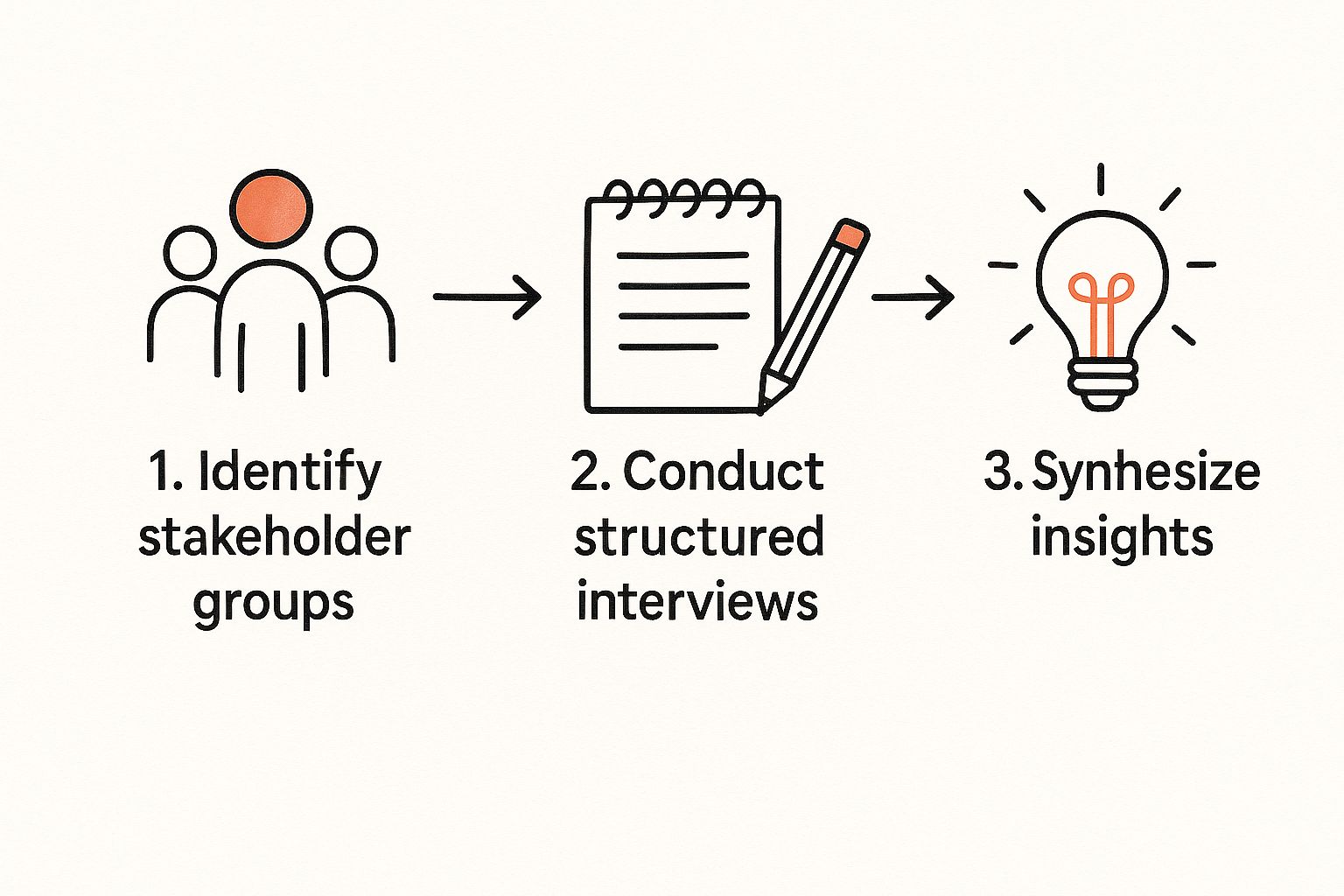 This shows how successful discovery isn't a series of random meetings. It’s a disciplined approach to identifying stakeholders, gathering information, and turning it all into a coherent strategy.